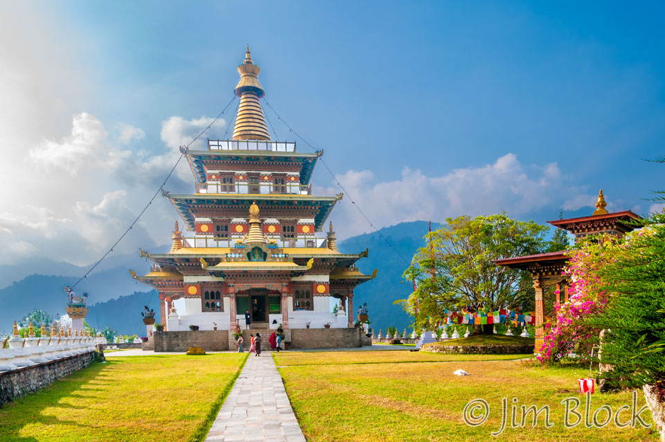 The temple is a 30 meter tall chorten consecrated in 1999 and dedicated to the fifth king.