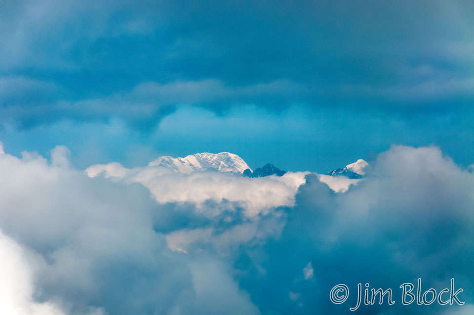 Below is the best I could do with a lot of enhancement. It is the mountain to the right of Lakey’s head in the photo above.