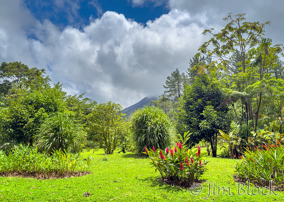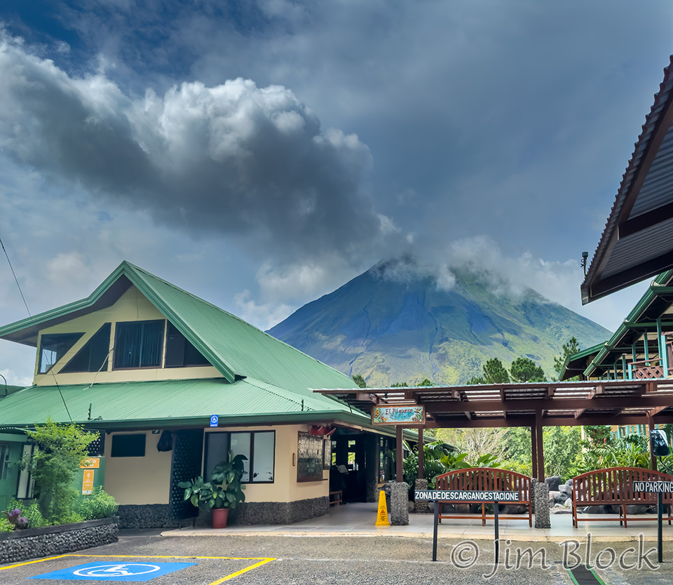 We arrived at the Arenal Observatory Lodge & Trails with the namesake volcano in the background at 2:25 p.m.  The cloud makes it look like the volcano is active, but it has not been for 15 years.  After a major 1968 eruption that destroyed nearby villages, it remained active with lava flows until 2010, but it is now in a resting cycle with only minor activity like weak gas emissions.