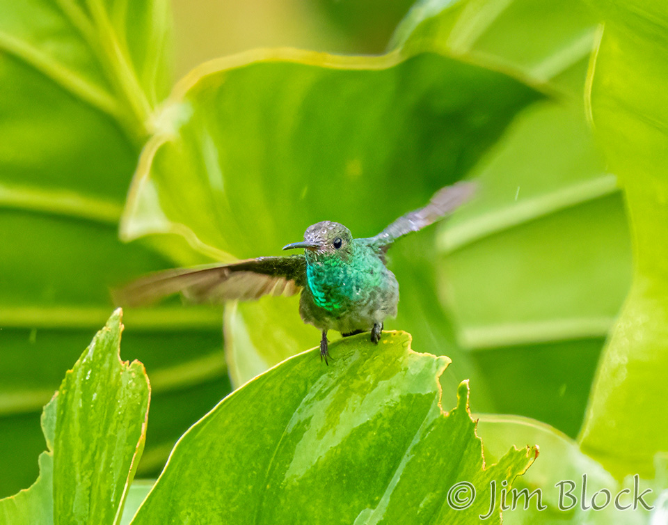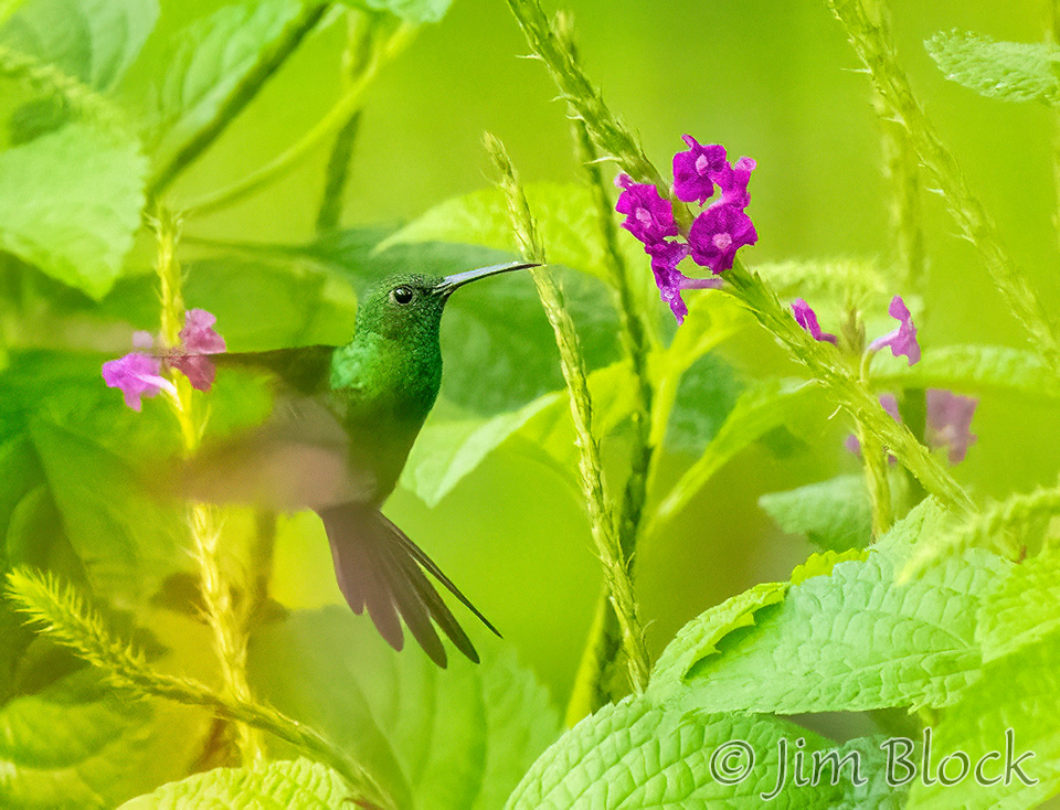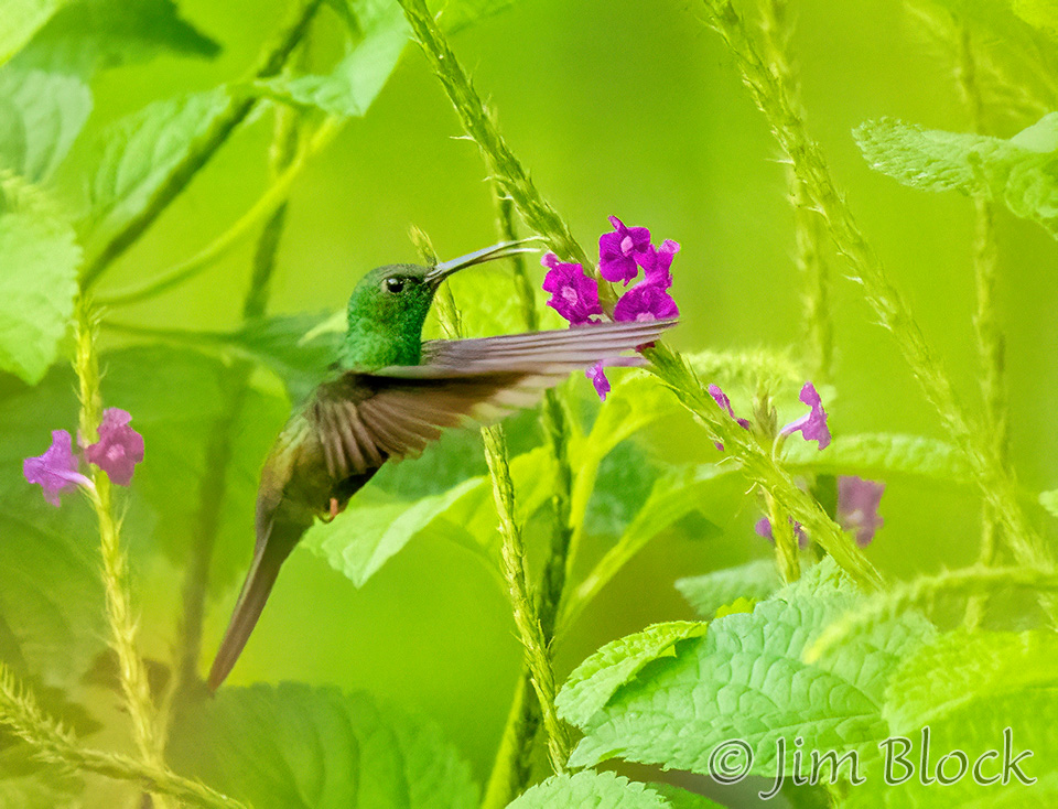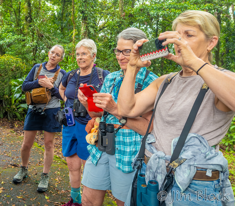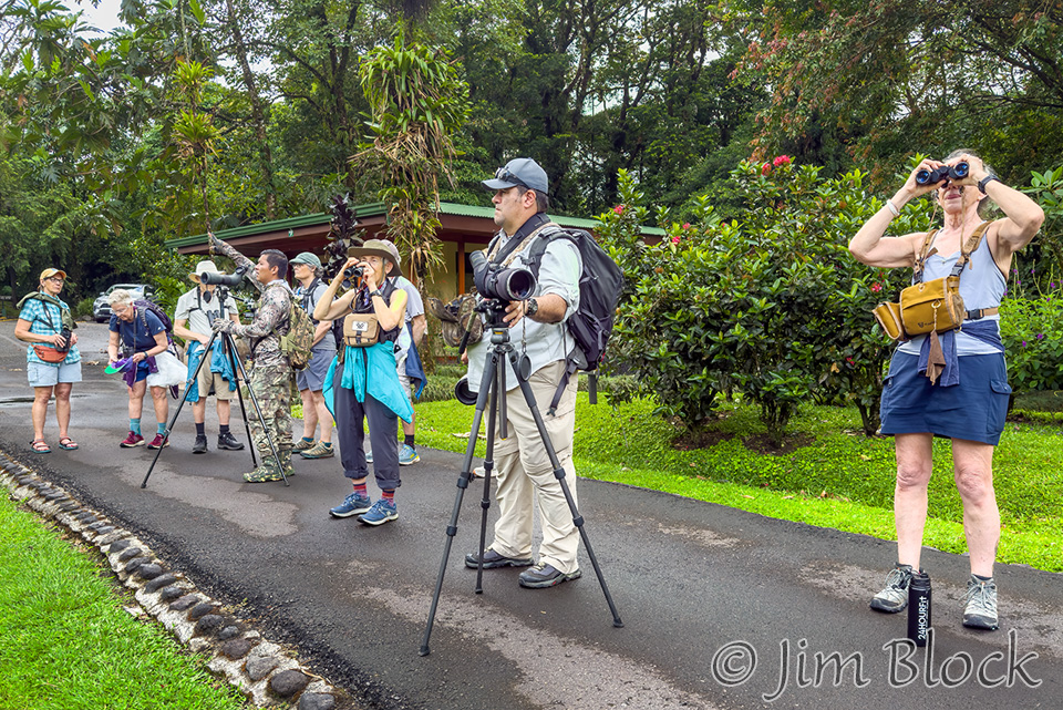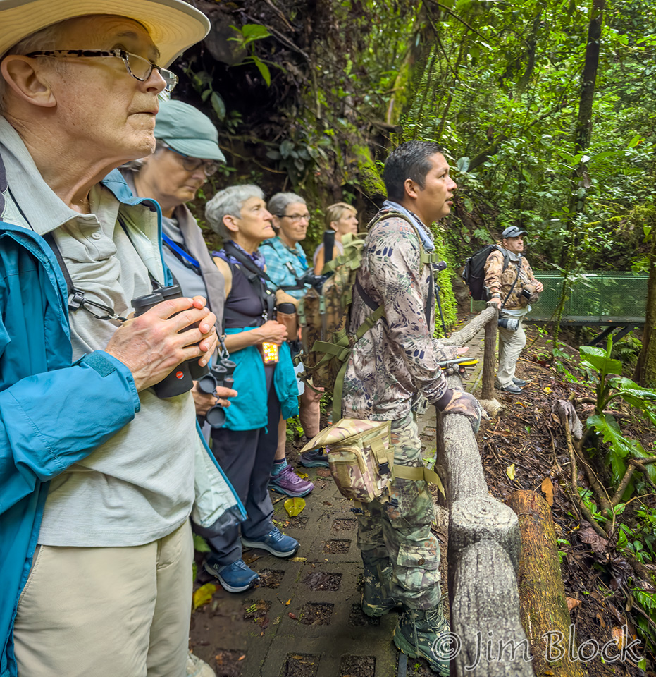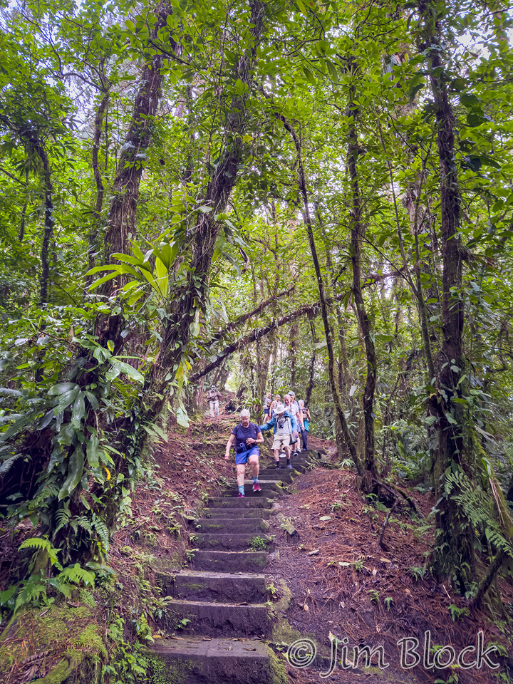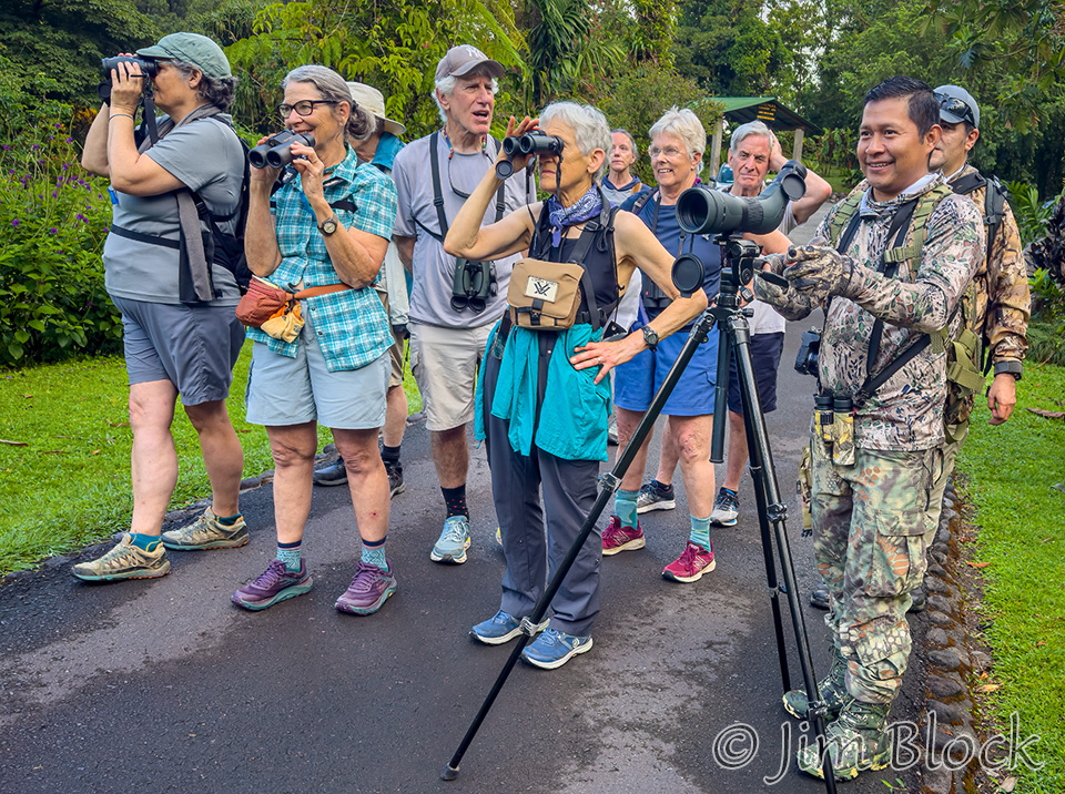 We looped out of the forest to search for hummingbirds; a “coquette” was mentioned as a special target. We first saw two beautiful green hummers: