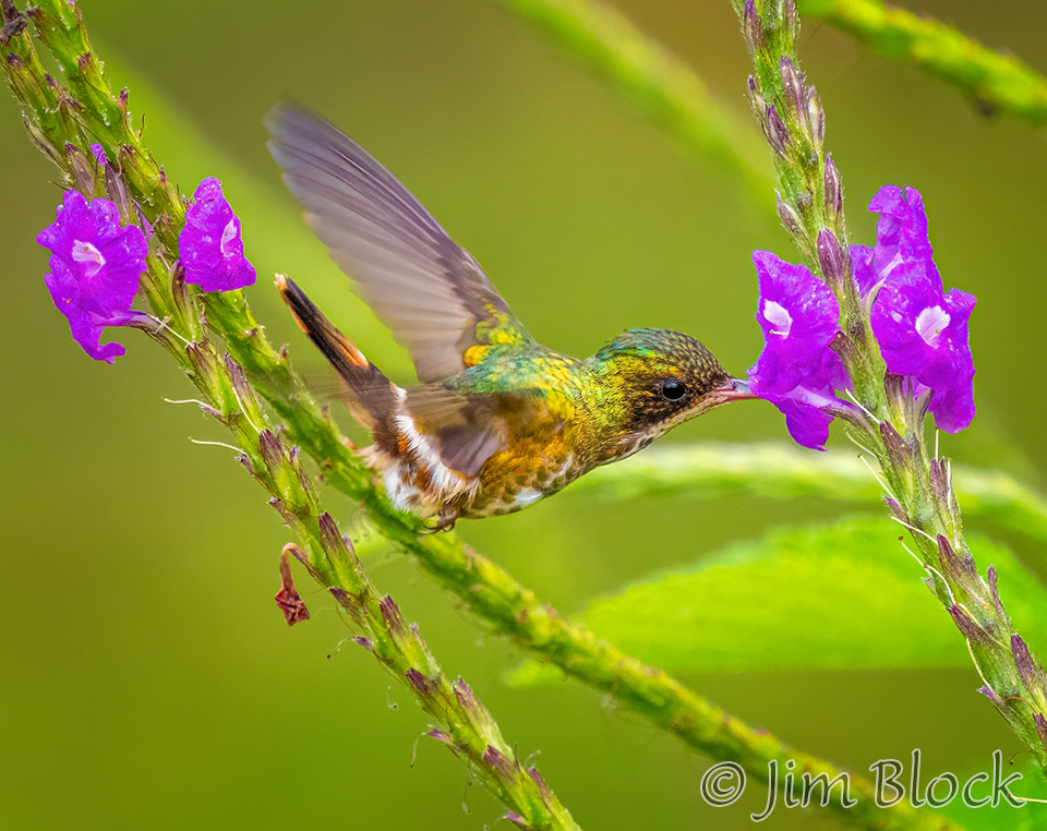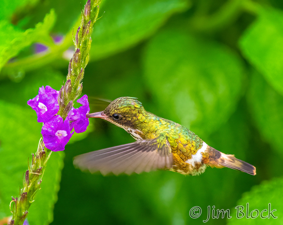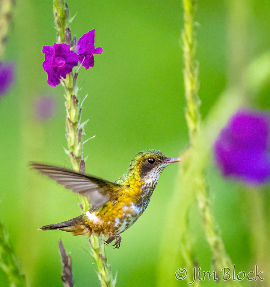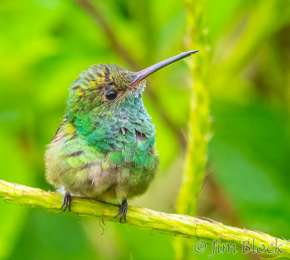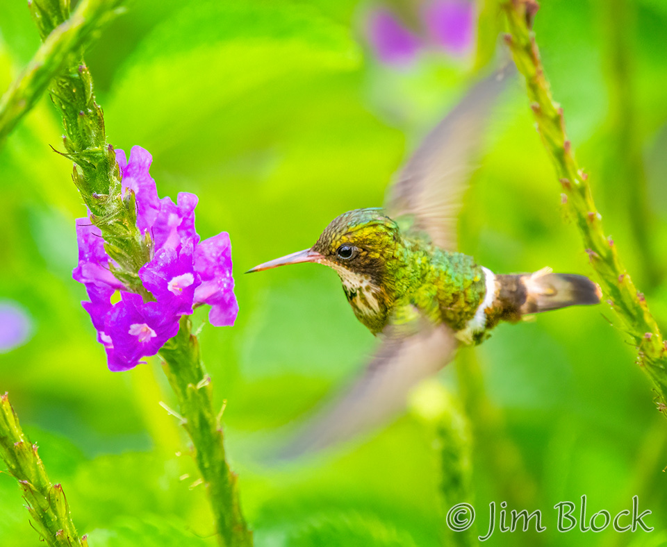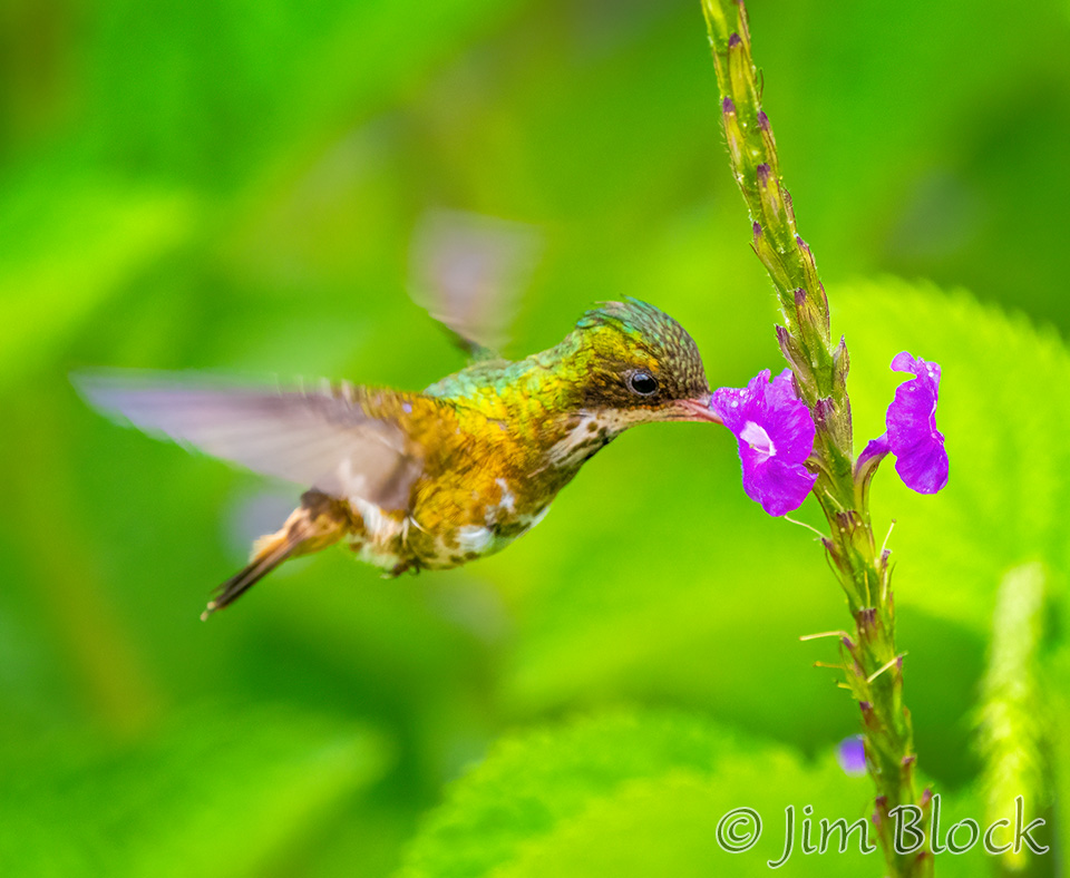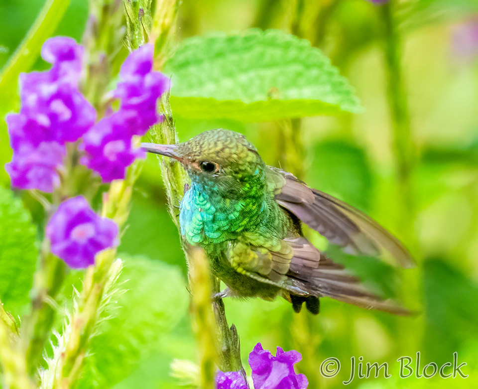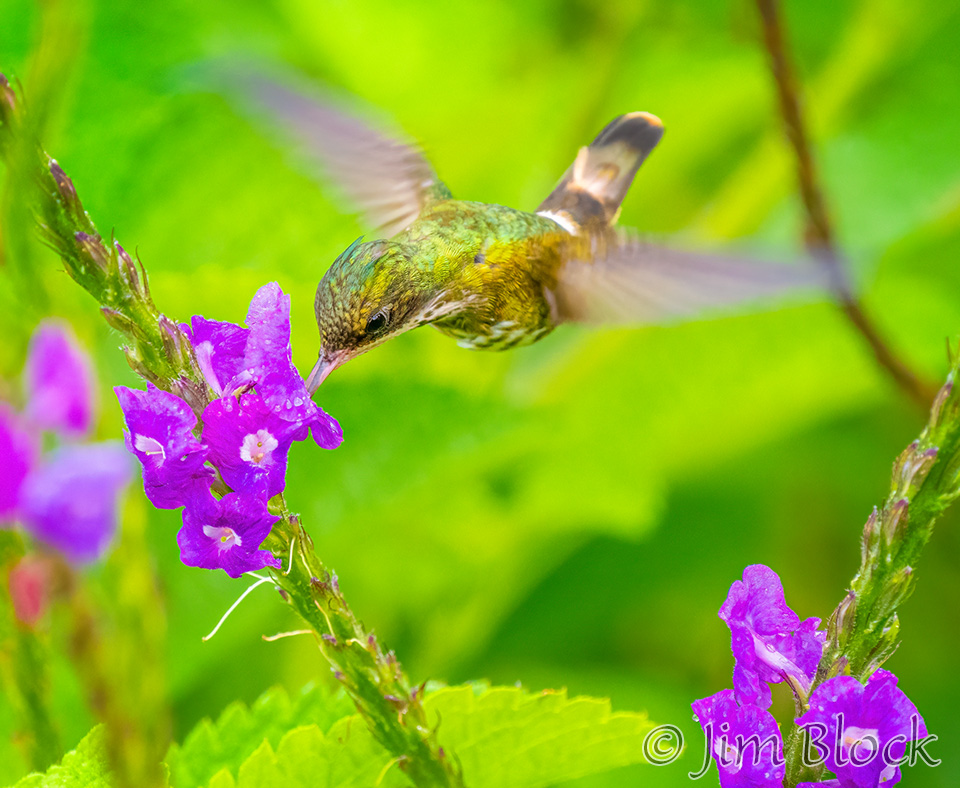 We looped out of the forest to search for hummingbirds; a “coquette” was mentioned as a special target. We first saw two beautiful green hummers: