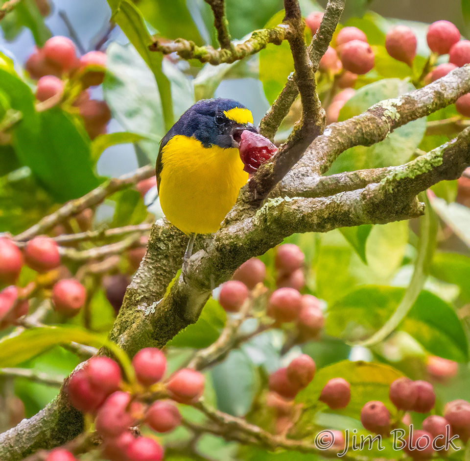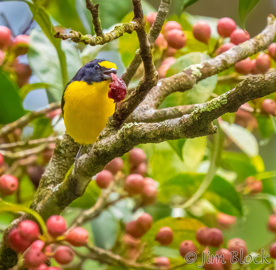 A Yellow-throated Euphonia had some fruit for breakfast.