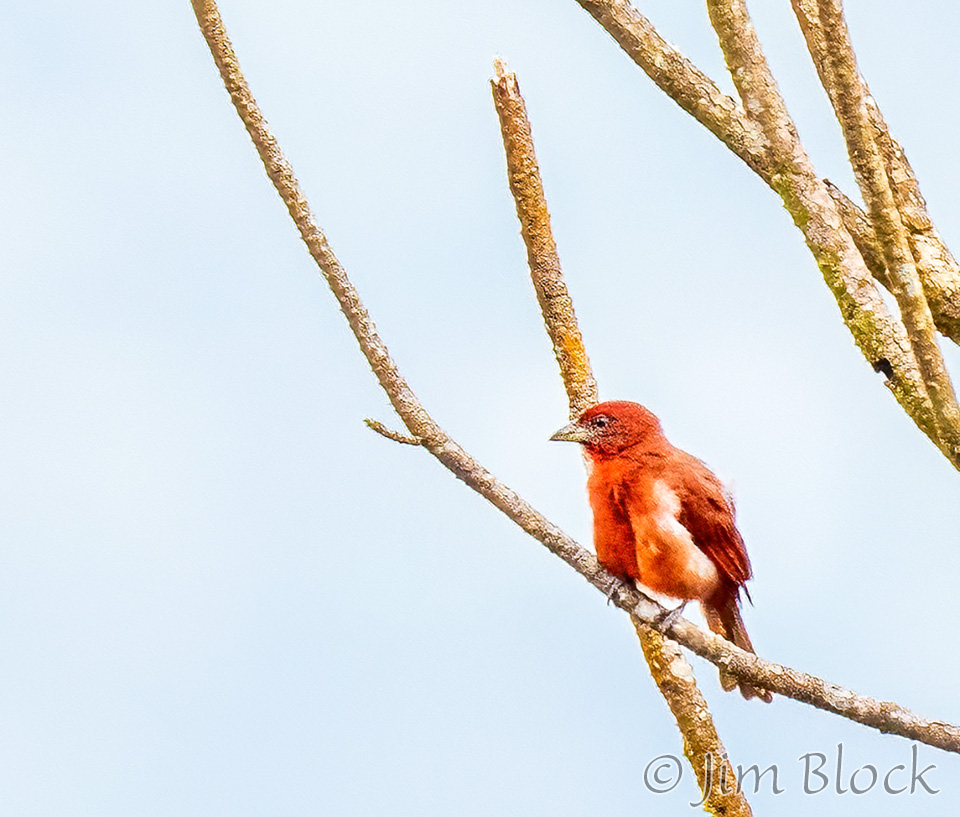 A birder pointed out a colorful Tooth-billed Tanager in a very distant tree saying I should be able to get it with my lens.  I could, barely.