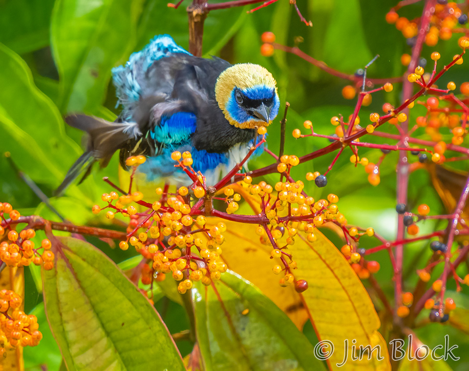 And a spectacular Golden-hooded Tanager making for a color theory dream example of blue-yellow complimentary colors.