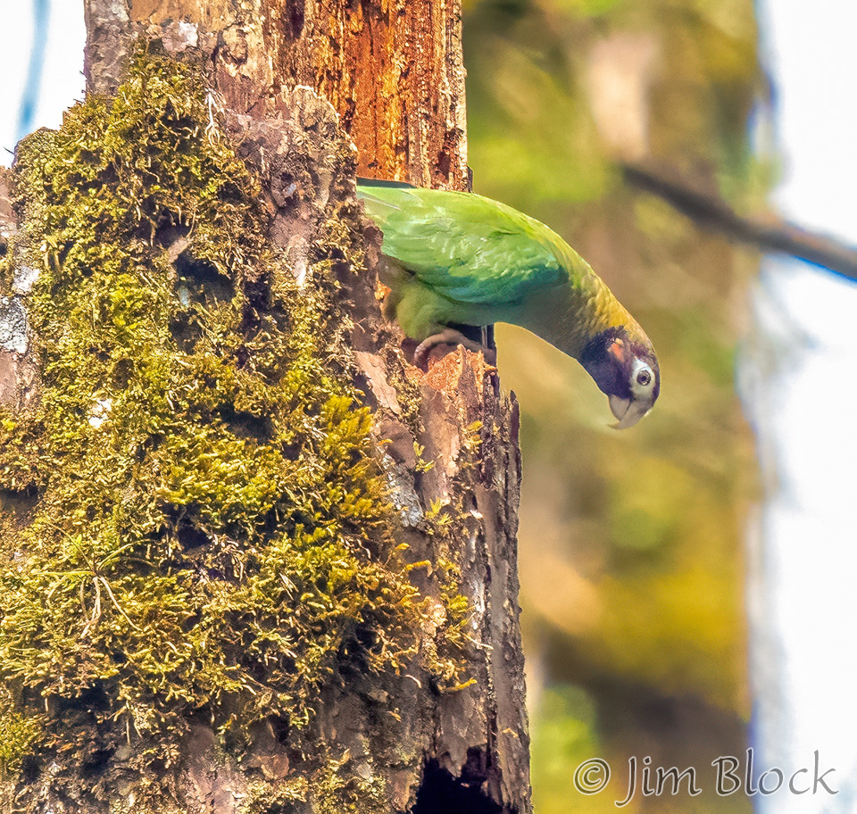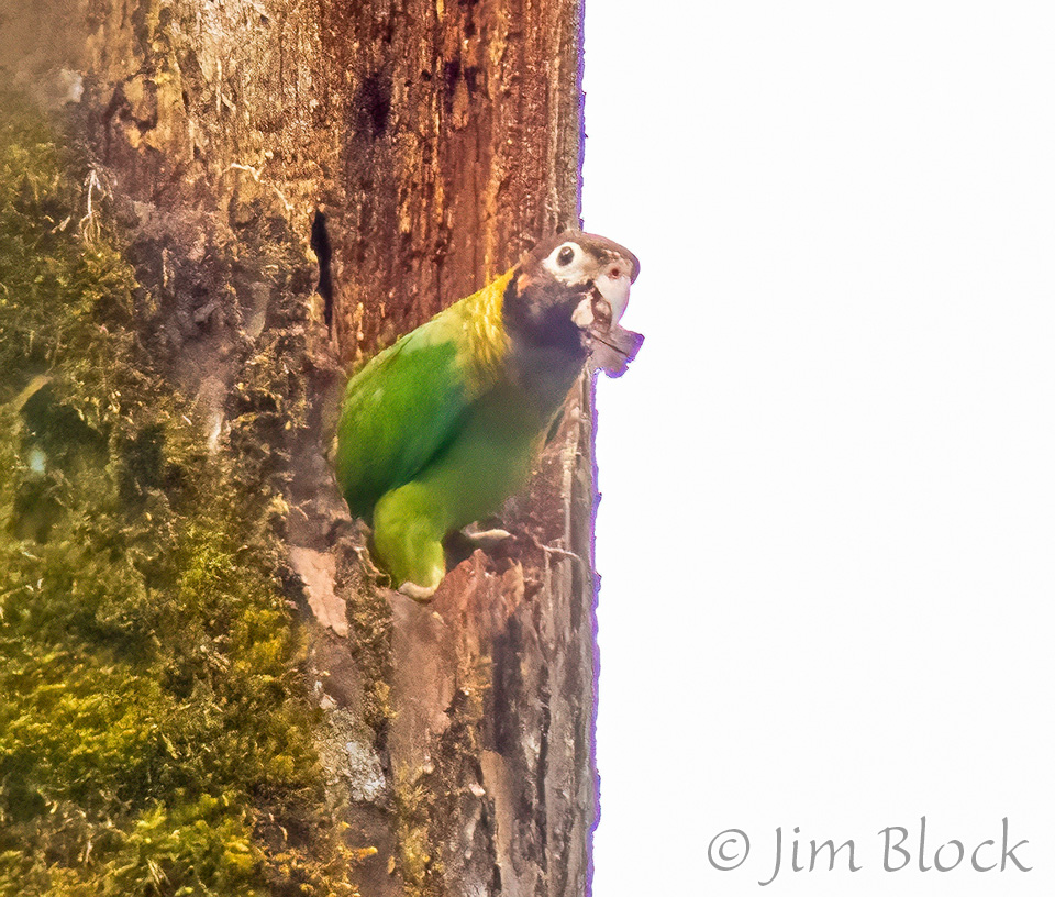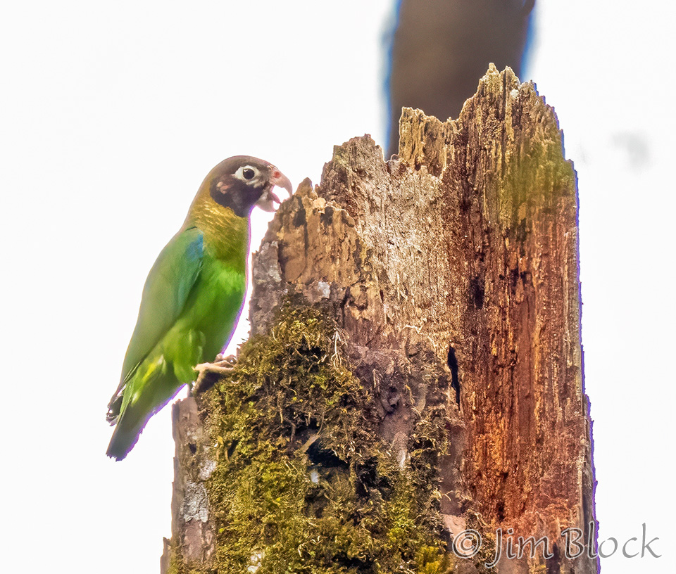 A Brown-hooded Parrot had a nest hole in a distant dead tree.  It seemed to be peeling pieces off the tree in some of the photos.