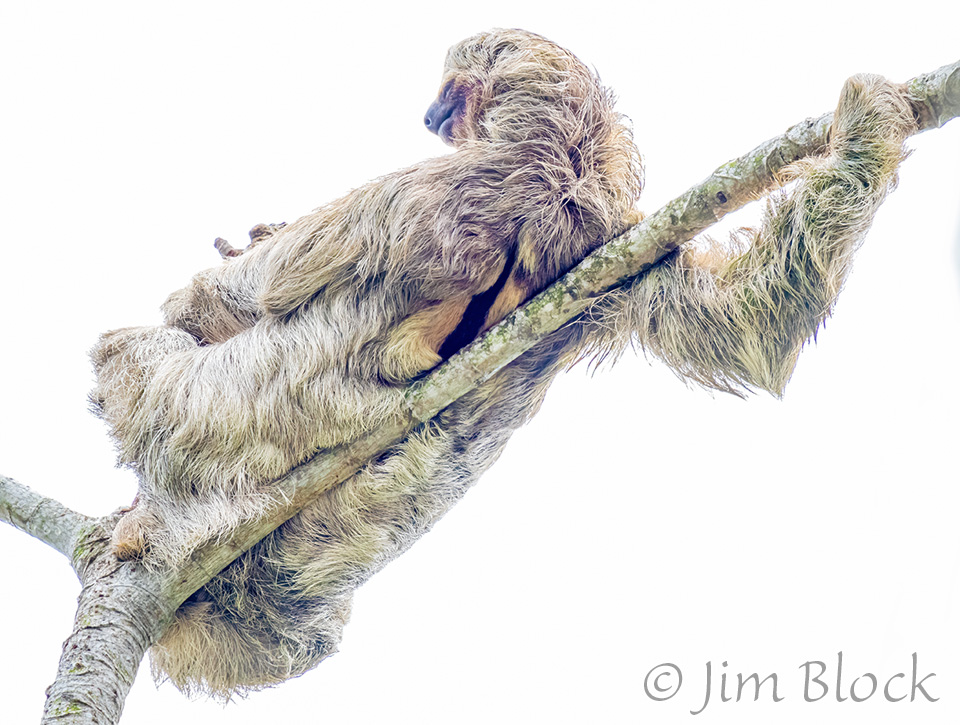 Since I had the only long lens left on the trip, Ted suggested I ride shotgun, an idea I much endorsed and appreciated. A number of times I was able to roll down the window or hop out and get photos that would have been missed otherwise — like two three-toed sloths.