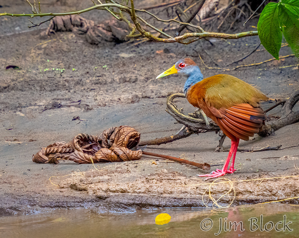 We saw a Russet-naped Wood Rail standing near a huge leaf.