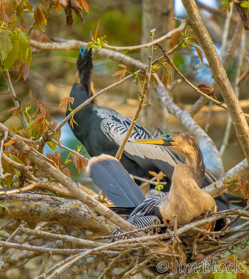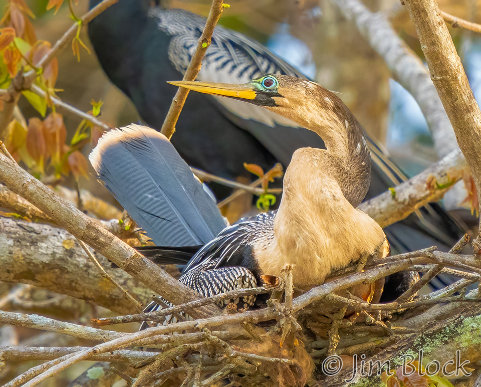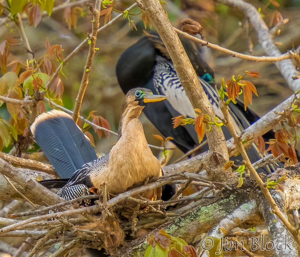 We found an immature Anhinga in a nest with a parent standing guard behind it.