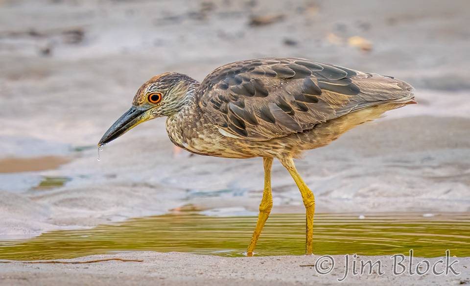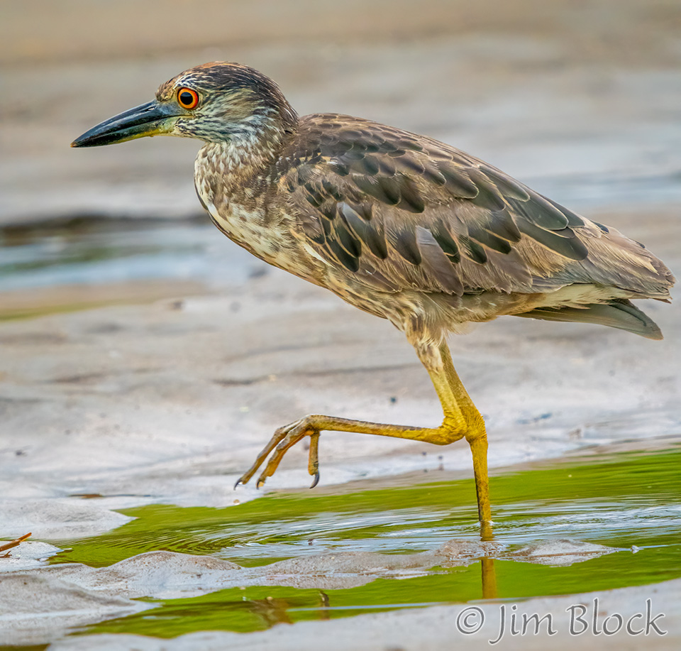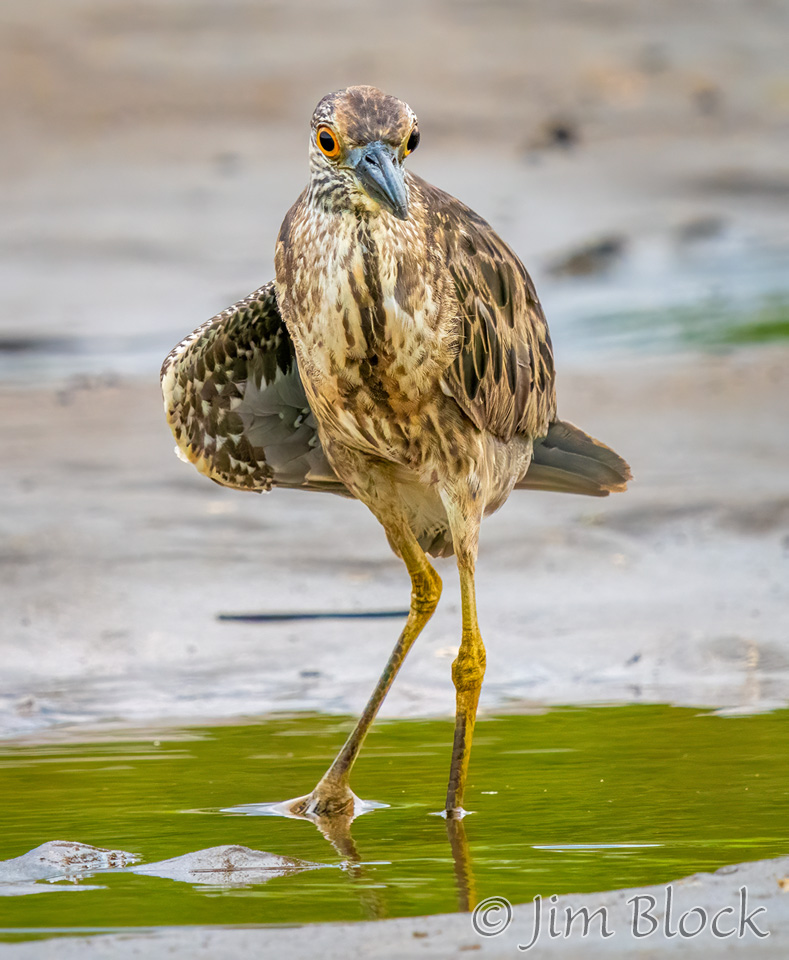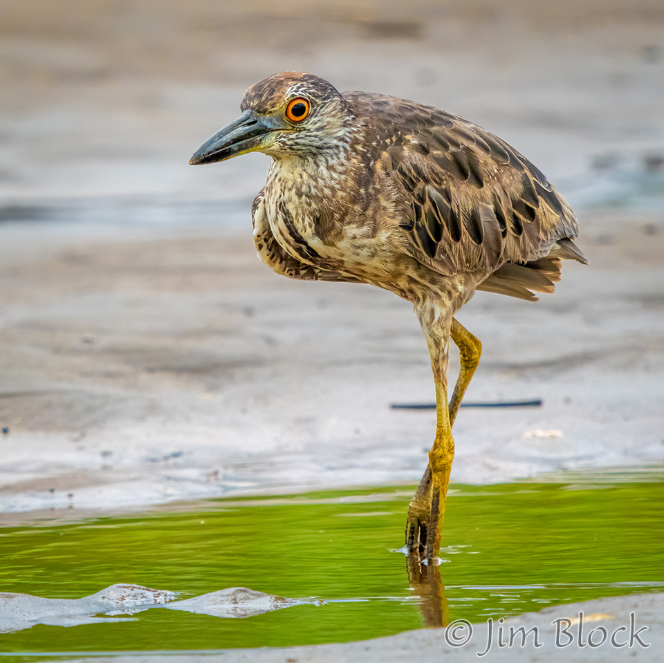 The first Yellow-crowned Night Heron we saw with the one walking near the Snowy Egret shown previously.