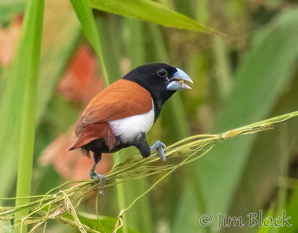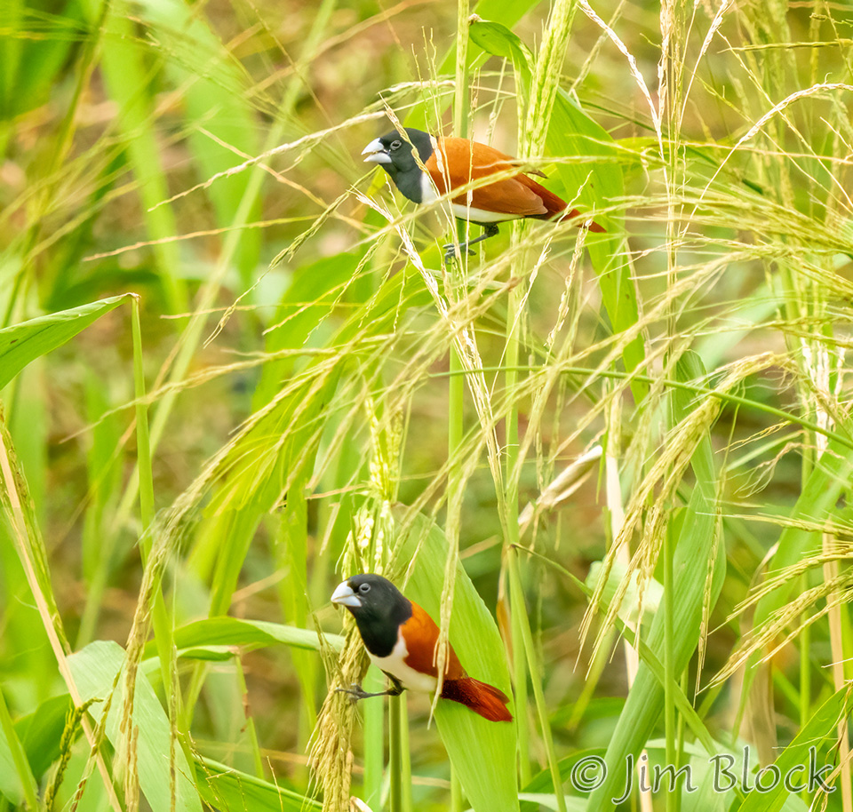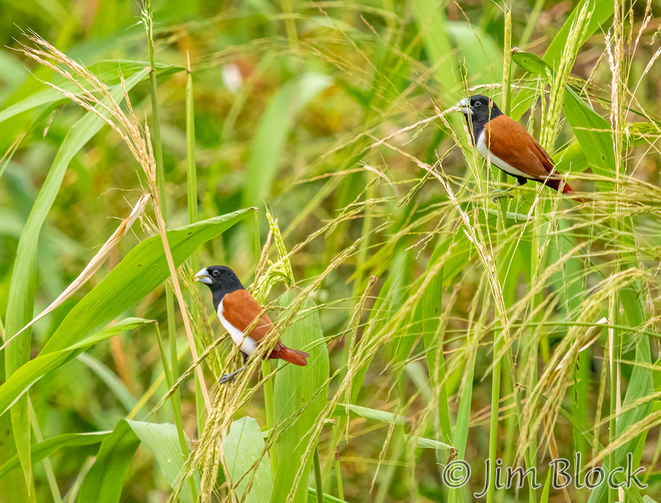 Tricolored Munia were feeding in the grasses above the river. This finch species was introduced from where it is native — Bangladesh, India, Sri Lanka, Pakistan, and southern China. In some western countries it is considered an invasive species. But it is a pretty bird.
