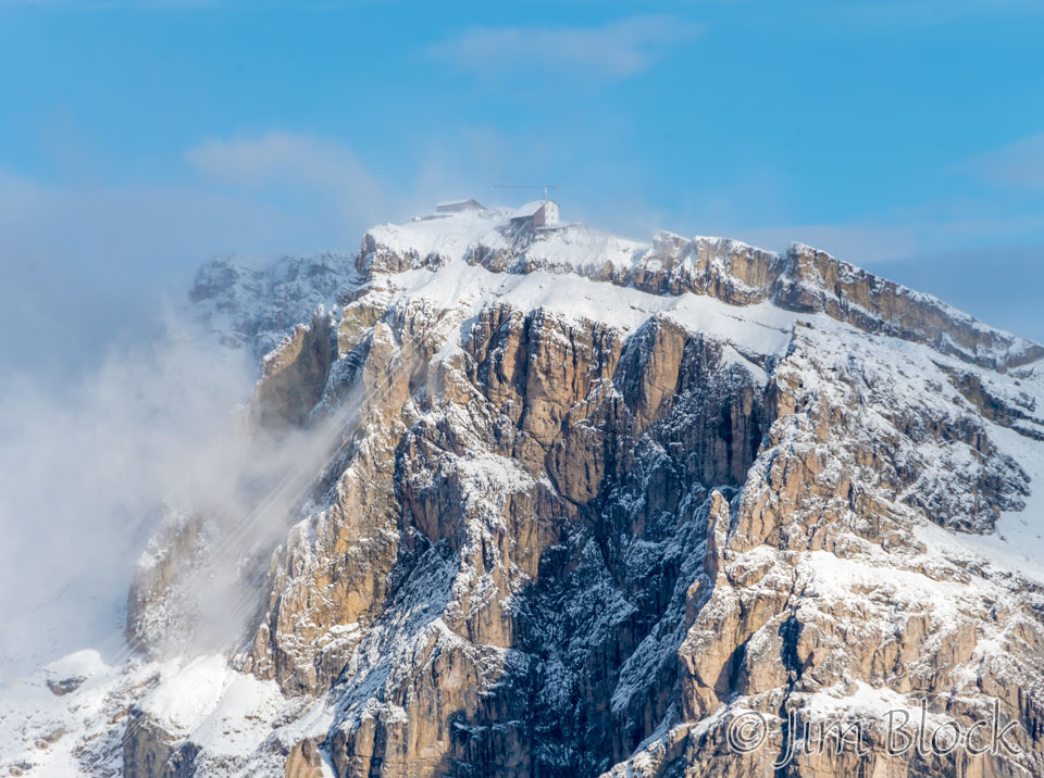 From about the same spot, here is a close up view of Rifugio Lagazuoi with the cable car terminal to the right of the rifugio.