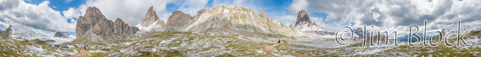 As we hiked the trail between Forcella Giau and Forcella Ambrizzola, I made a 360° panorama seen below. Below it are cropped versions of the left and right side of this image.