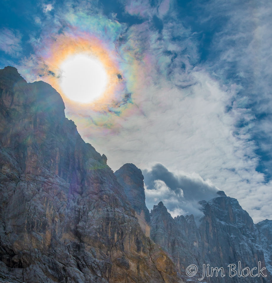 Enroute to Ireland I saw some Glories below the plane. Here are two photos shot through the badly scratched window of the plane. That is the shadow of the airplane in the middle of the glory.