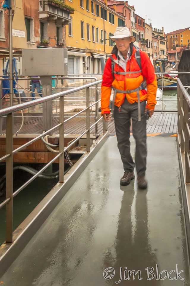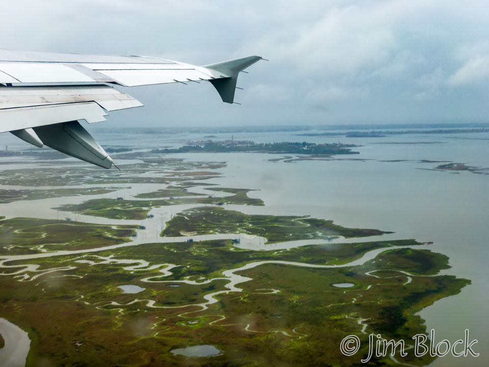 Finally the water bus arrived and we were off down the canal then across open water. We entered a channel that I had photographed from the air during our flight to Venice two weeks earlier. It was amazing how fast the water buses and taxis traveled and how close they passed to one another. In my tiny notebook I wrote, “we could have easily skied behind the water bus.” This channel, and in fact most of the canals in Venice, was definitely not a “No Wake” zone.