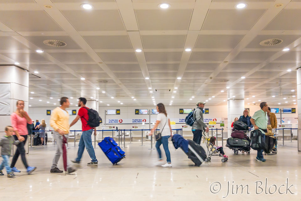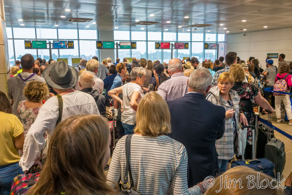 After figuring out where the back of the line was and standing in line for a while, I had a hunch that since I had check in online from our AirBnB, there might be a short line for a Bag Drop that I could get to. I spotted it at Station 9 and worked my way around the right side. That worked well.