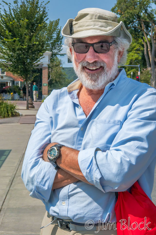 Here is Jim in Hanover waiting for the Dartmouth Coach to take us to Logan.