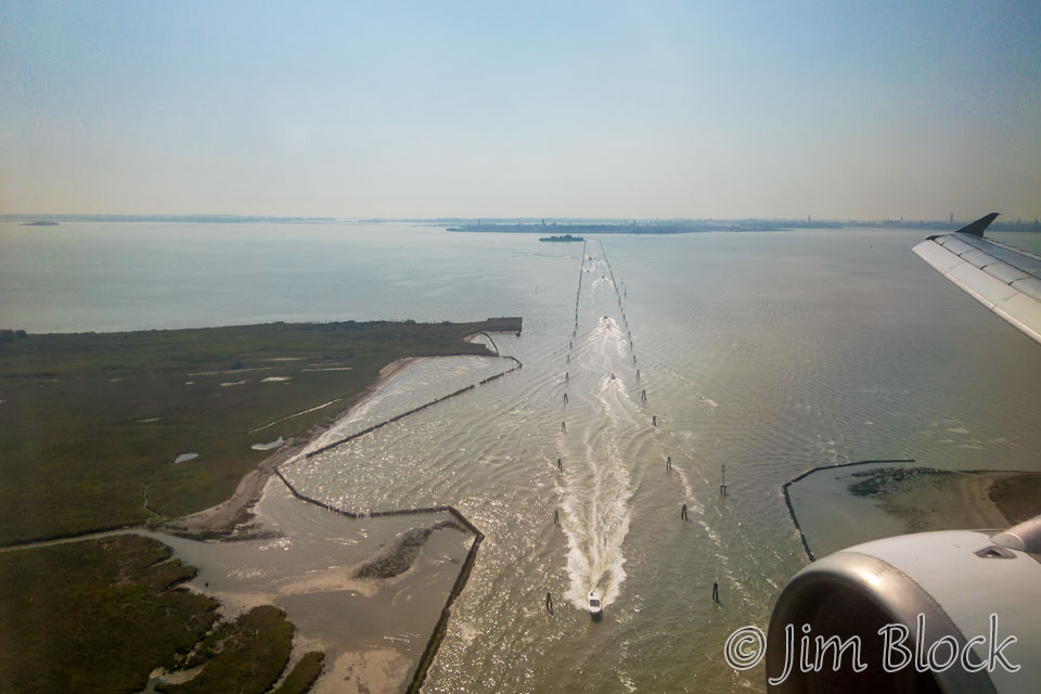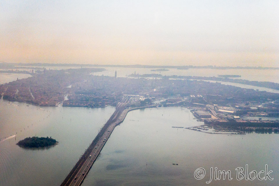 As we approached the airport in Venice I got a photo of Venice. You can see the causeway leading out to the over 100 islands that comprise Venice. At the end of the causeway are rows of train platforms. To the right, just out of the photo, is where cruise ships dock. Between the two is the only (small) area in Venice where cars are allowed.