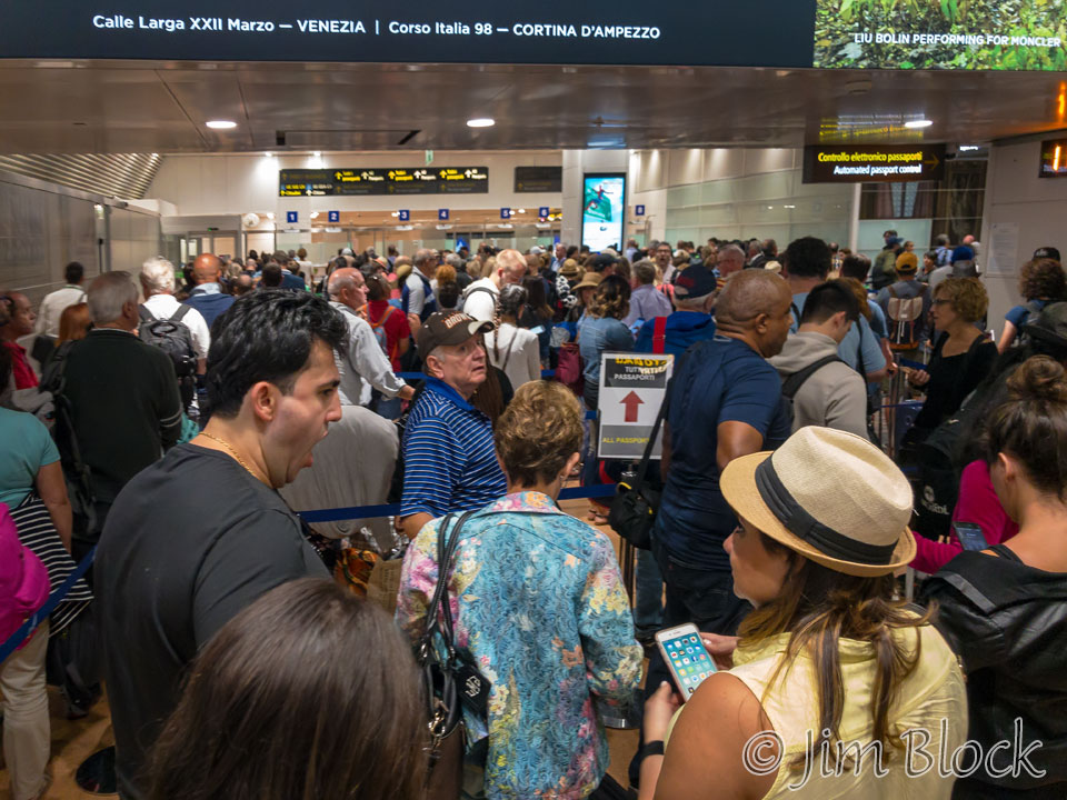 The Venice Marco Polo Airport quickly became one of my least favorite airports, and this feeling was reinforced during our trip home. Here is the mess going though immigration. It was worse than it looks.