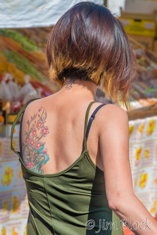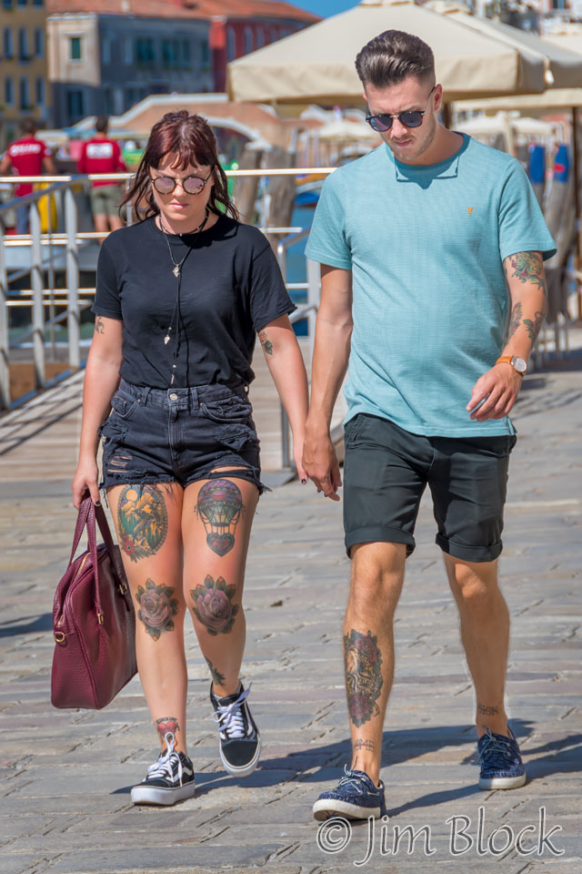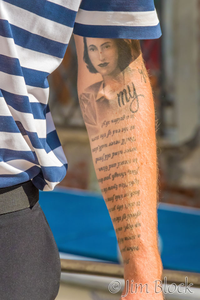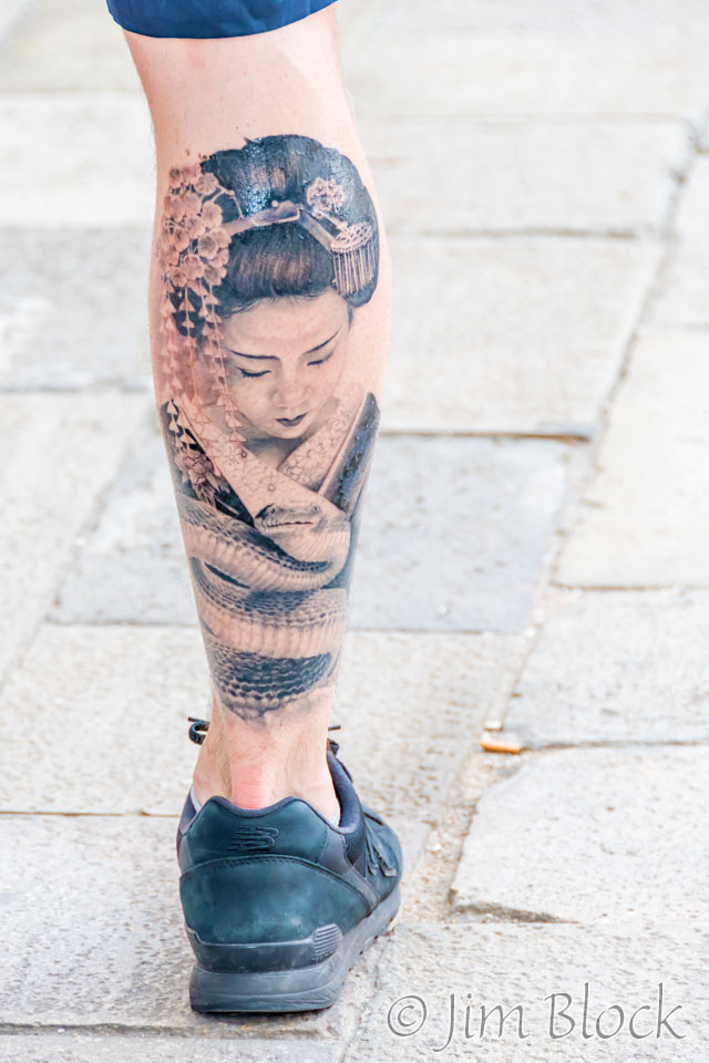 We saw many tattoos in Venice, on backs and arms… … and on legs. Here are some of the tattoos I photographed. Some subtle, some dramatic.