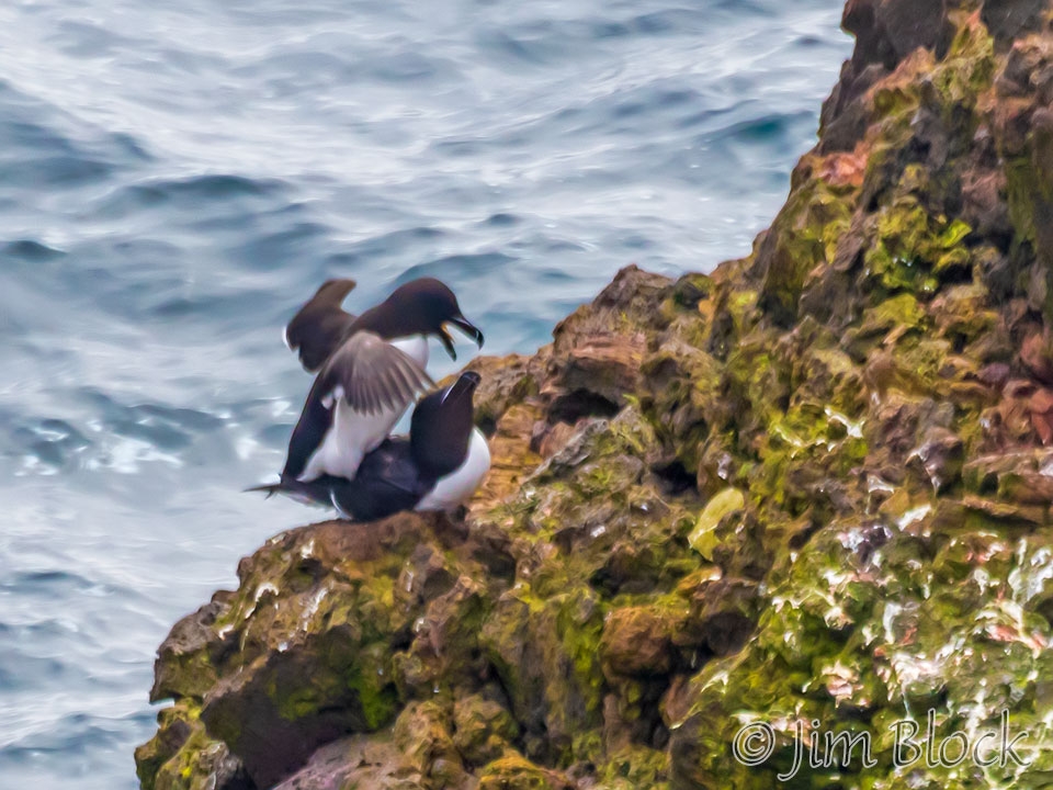 There were many Razorbills flying around. Here is a brief slideshow of them flying along the edge of the cliff and a pair mating.