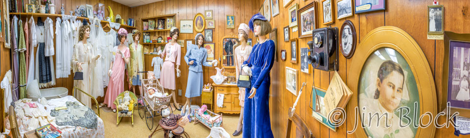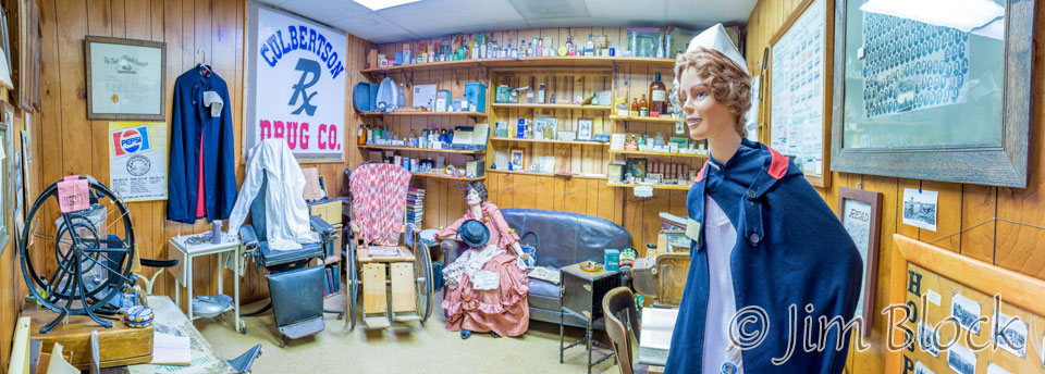 One of the real surprises when we drove from New Hampshire to Montana was the Town of Culbertson Museum in northeastern Montana just across the border from North Dakota. We drove right past the nondescript building then found out this was where we could get some tourist information — like a suggestion of where to stay for the night. We went in, spoke briefly with the woman there, grabbed a bunch of literature, and were about to leave. That was when we noticed a side room decorated with interesting old items. Then we noticed another room with a different theme. Soon I had my camera and tripod out and spent the next 20 minutes photographing the museum. We would have stayed longer, but we had some distance to travel before staying a last night short of Glacier. I never did photograph the two rooms that caught our attention at the beginning. But here are some of the photos I took.