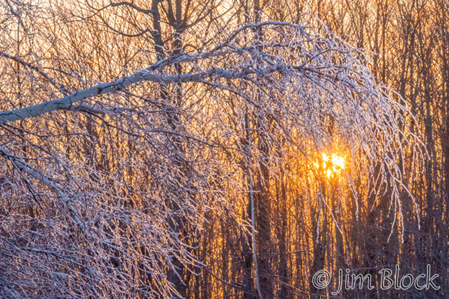 Yesterday the sun blazed through the still-ice-covered trees in our yard before 6:30 AM.
