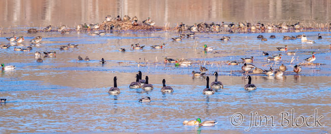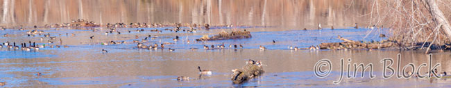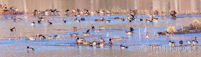 Here is a crop of a small part of this panorama. A rough count of this cropped version revealed about 100 ducks.