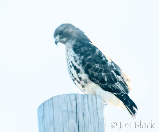 Along the East Thetford Road, I photographed through the windshield of my car — hence the poor quality — what I believe is a red-tailed hawk. I got a shot as it left its perch, and it appeared to have a red tail.