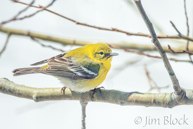 After the hawk left I did not see the Pine Warbler for the rest of the day or all this morning. But just after noon today it appeared along with about 50 Redpolls.