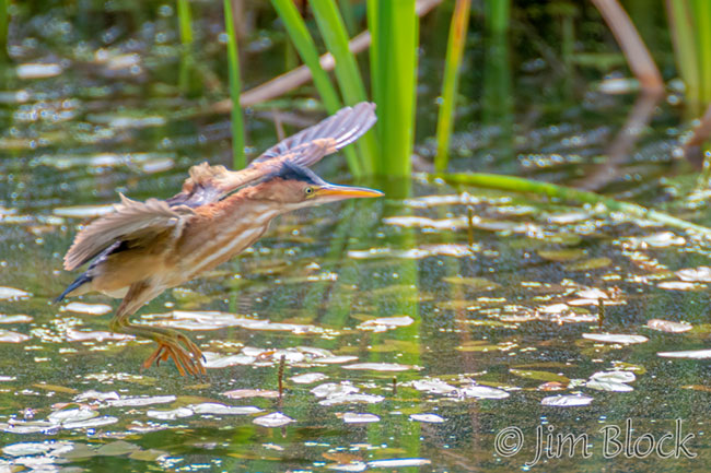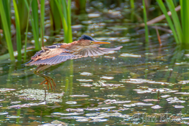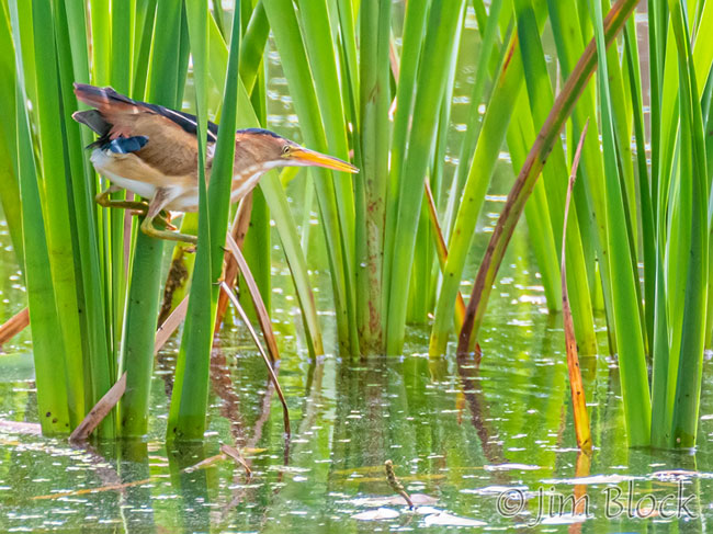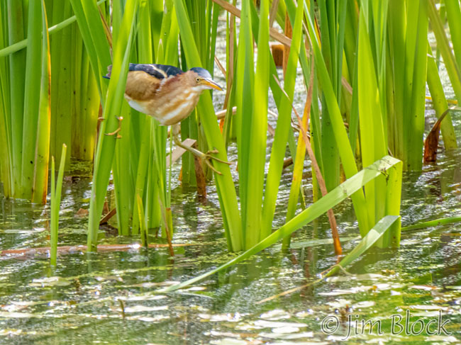 After its morning snack, the bittern flew to the back left reeds and perched.