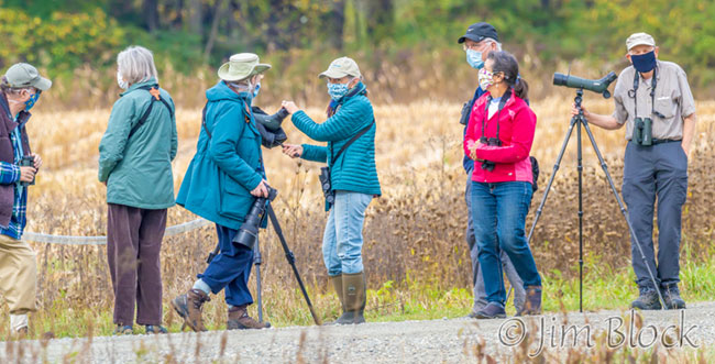 After a nice loop around the recently cut corn field, I got back to a group that had now gathered to look for the rare Western Kingbird. Chris Rimmer arrived and immediately pointed it out in the top of a tall tree far across the field. It seemed almost like he brought it with him. I’m not sure if others spotted it before he did.