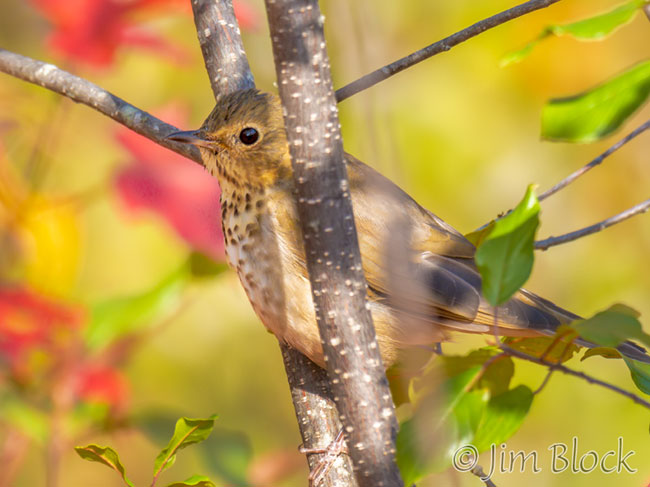 … and a Swainson’s Thrush were set off nicely by the colorful foliage.