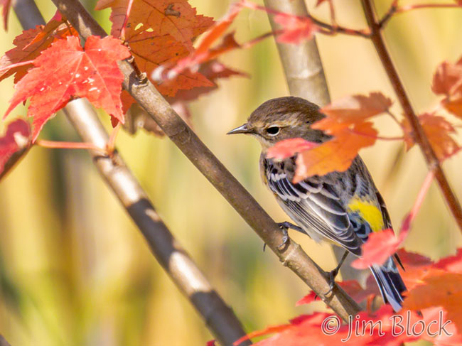 At the marsh I found a pair of Swamp Sparrows, a Palm Warbler, and many Yellow-rumped Warblers. Here is a Yellow-rumped Warbler.  You can see where the name comes from.