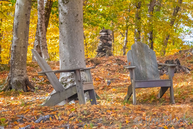 The biggest adventure this day was a pleasant hike with Jann.  I took a few photos during our hike, but near home we stopped at a small area where Dorothy Byrne had put out some chairs for folks to relax. Nearby a stone tower had been built.  So I took a pair of photos to illustrate something I teach in my photos classes.