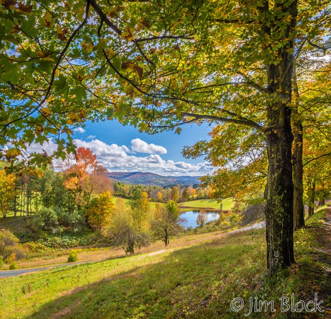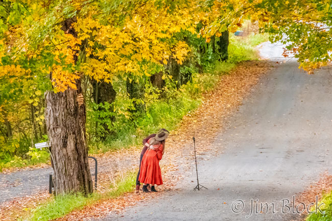 I spent much of the afternoon in Pomfret, VT. As I approached Sleepy Hollow Farm I saw a couple posing for photos with their phone on a stick. I stopped well short to not disturb them. On the tree at the left side of this photo you can see the camera installed when Joe Perry of Aerosmith bought the place and put up a big barn out back. Later I noticed their car had NY plates.