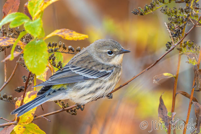 A flock of Yellow-rumped Warblers frantically worked the shrubs at my feet. Here is one of them.