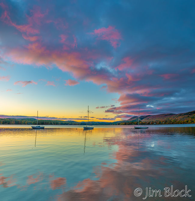 I have visited Lakeside Park in Enfield a number of times for sunrise. It is a beautiful spot with a several dozen sailboats moored just off shore.  Very often in the fall I will see photographers with NY license plates. It must be listed somewhere as a good photo spot, like the Jenne Farm which I carefully avoided this year.