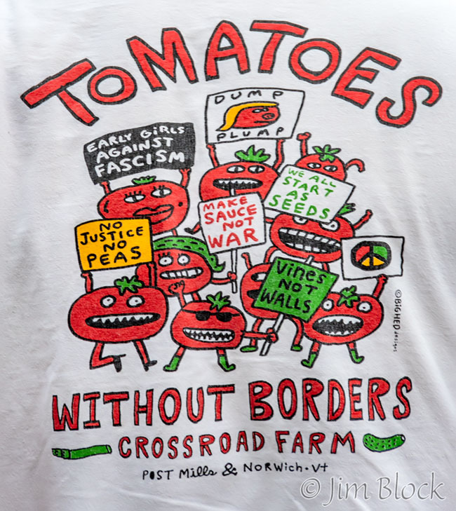 We walked the RR tracks, but I didn’t get any bird photos there. However, Tim Taylor was wearing an advertisement on his back for his great farm, so I photographed it.