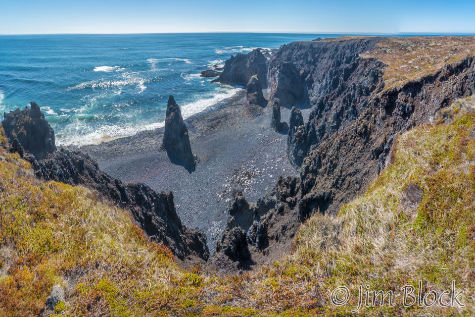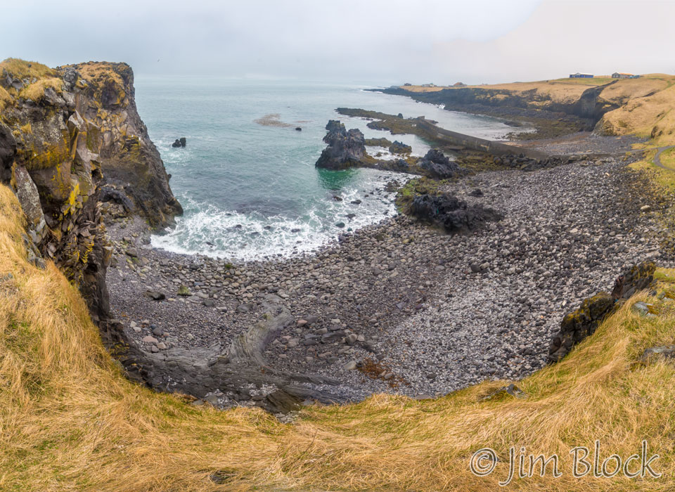 There is a wonderful hike from Hellnar to Arnarstapi. Starting near the pebble beach, as seen below in this four-photo panorama, we walked part of the way toward Arnarstapi, photographing the scenes and birds along the way.