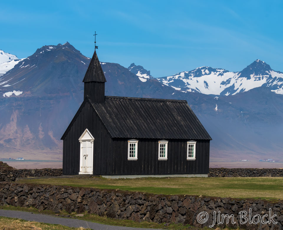 We visited the Black Church at Búðir. The mountain ridge in the background is called Helgrindur. This mountain massif is dotted with patches of eternal snow. Strong gusts of wind hitting from the north are magnified up there under certain weather conditions. The name means The Peaks of Hell.