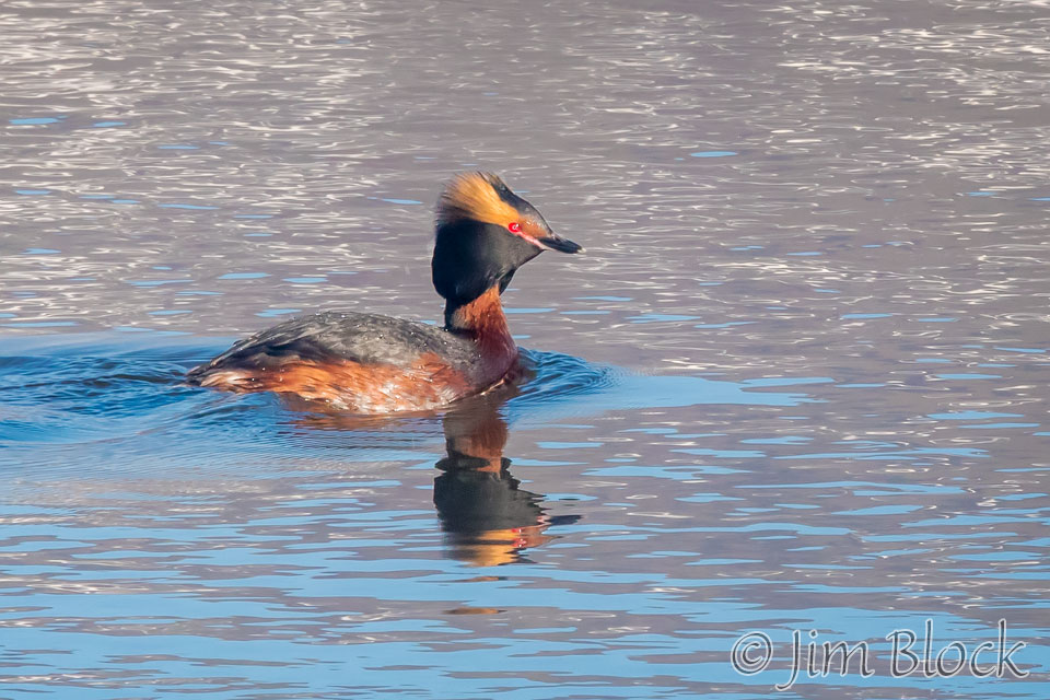 Just beyond the beach to the west, we saw a Horned Grebe reflected in a small body of water.