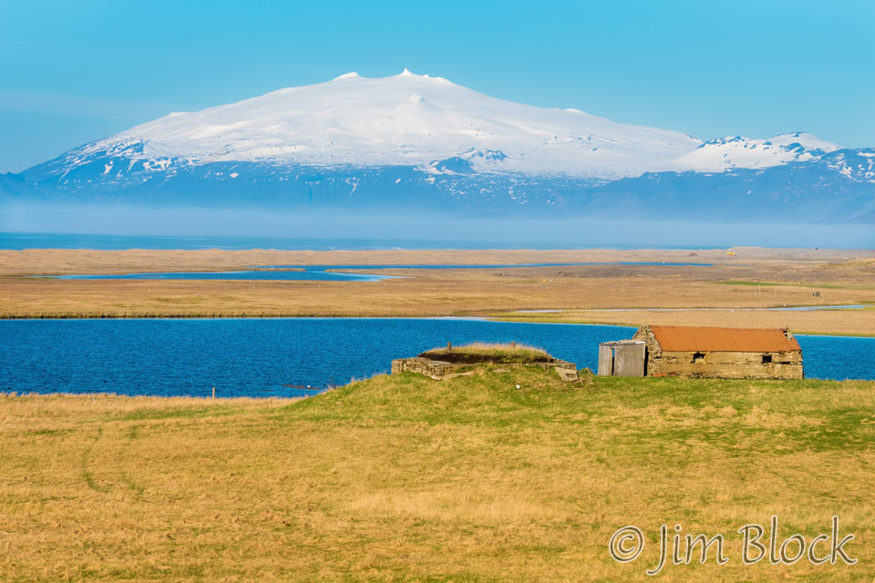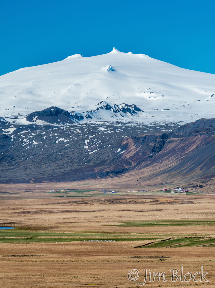 Driving from the beach to Langeholt we got some nice views of Snæfellsjökull (4744 ft) which is a 700,000-year-old glacier-capped stratovolcano. Sometimes it may be seen from the city of Reykjavík over Faxa Bay, at a distance of 120 km (75 miles).
