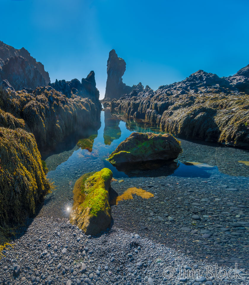 You can click the image below to get to a site with a wider 12-photo panorama of this spot where you can zoom way in then pan around. When you get there, click the double arrow above the image on the right to see it full frame. Please wait for the resolution to download. You can use the + and – keys to zoom and the arrow keys to scroll. Or use the scroll wheel to zoom and the left mouse to drag.