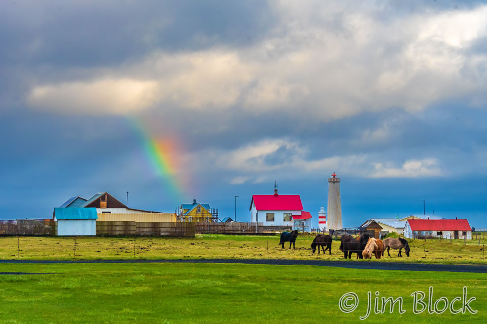 We got a nice rainbow from the village of Garður.