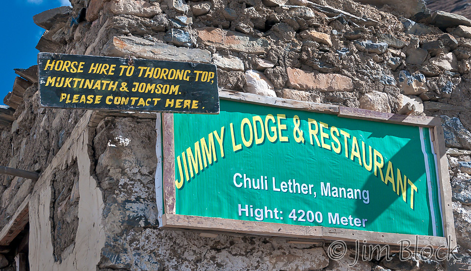 We crossed a long suspension bridge before Letdar. In Letdar there was a “Jimmy Lodge and Restaurant” that offered rides over Thorong La or Thorung La, spelling is optional in Nepal as Lelli says. Like Yak Kharka, Letdar was just a small group of lodges, not really a town.