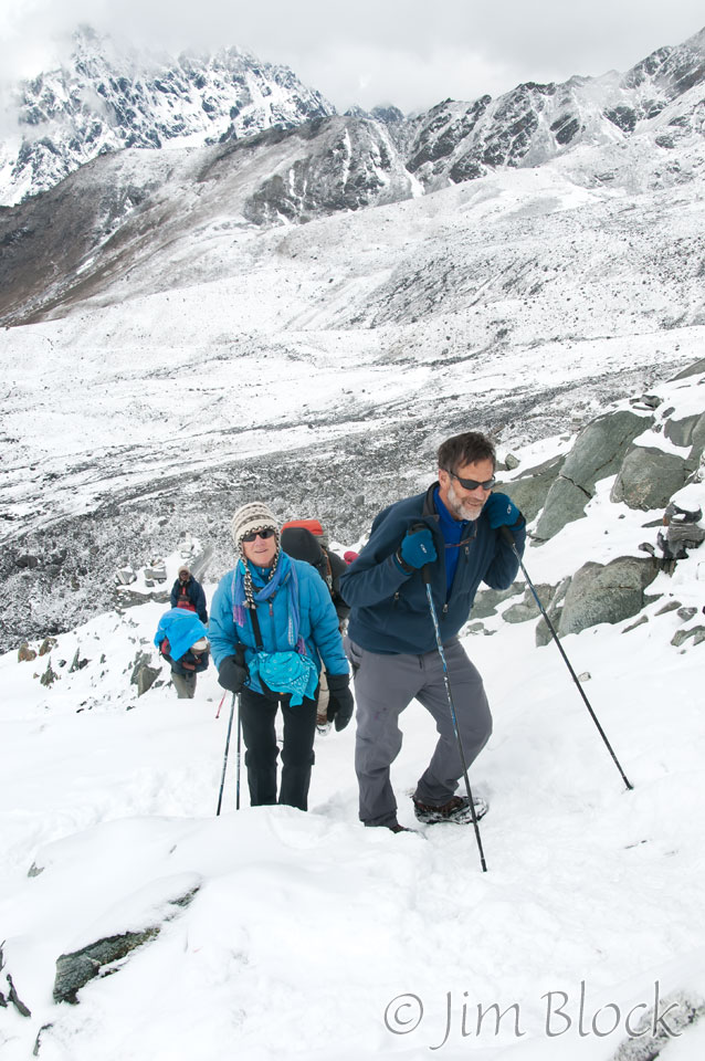 Here are Carolyn and Milt part way up to the Renjo La pass at 9 AM